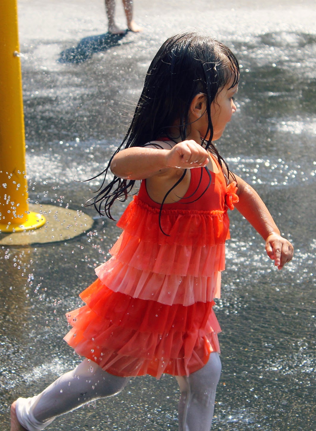 { Christie crossing the raging waters with glee. Me? I was terrified the first time and a little less on the way home. Wet? Yes. }